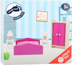 Tato detailně zpracovaná sada ložnice do domečku pro panenky přináší kvalitní dřevěné zpracování, jemné barevné ladění v růžové a bílé a promyšlené rozměry pro pohodlnou hru. Součástí je postel s peřinkou, šatní skříň, noční stolky a lampičky – vše v měřítku pro panenky do 12 cm. Odolné masivní dřevo zajišťuje dlouhou životnost a bezpečnou zábavu pro děti od 3 let.