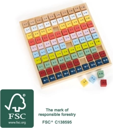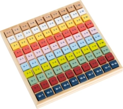Tato dřevěná tabulka s barevnými kostkami je ideální pro první krůčky do světa matematiky. Děti si pomocí vkládání a skládání trénují násobení, rozpoznávání čísel i koordinaci oko–ruka. Pevná dřevěná konstrukce zaručuje dlouhou životnost a bezpečné používání.