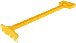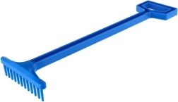 Dlouhá rukojeť a tvarovaný konec zajišťují stabilní držení při hrabání písku i listí.