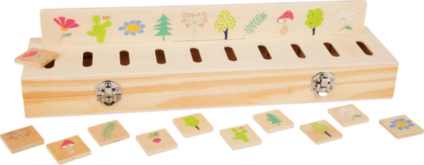 Pro děti, které chtějí objevovat, jak věci fungují, je tato dřevěná motorická vzdělávací hračka od Small Foot ideální volbou. Navržena je pro třídění rostlin, ovoce a zvířat, což pomáhá při rozvoji barvového a tvarového rozpoznávání u dětí. Všechno lze snadno uschovat v herním boxu.