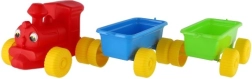 Vláček má pestré barvy a úsměvavý obličej, což ho činí oblíbeným u dětí a podporuje jejich kreativitu.