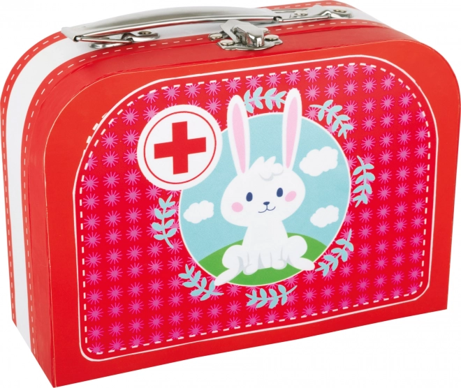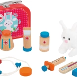 - injekční stříkačka, teploměr, pinzeta, stetoskop, mast, tablety, plyšový králíček, přenosný kufřík