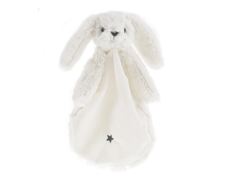 Usínáček zajíček v bílé barvě kombinuje měkkou plyšovou hlavičku s lehkou textilní dečkou, která se snadno drží i těm nejmenším ručičkám. Hebký povrch uklidňuje, pomáhá navodit pocit bezpečí a podporuje klidné usínání.