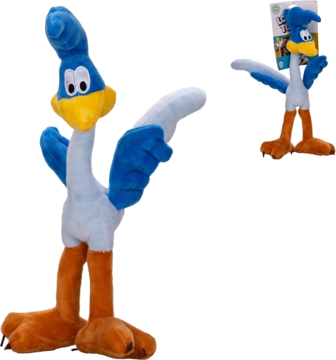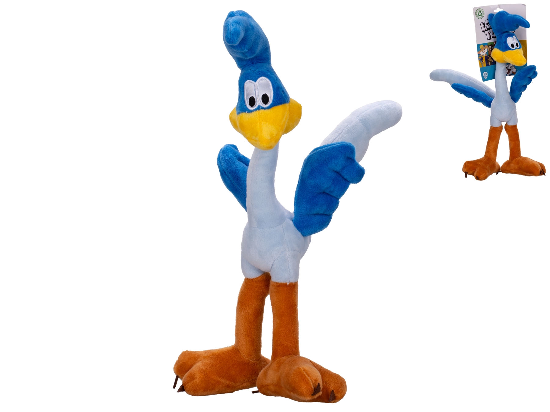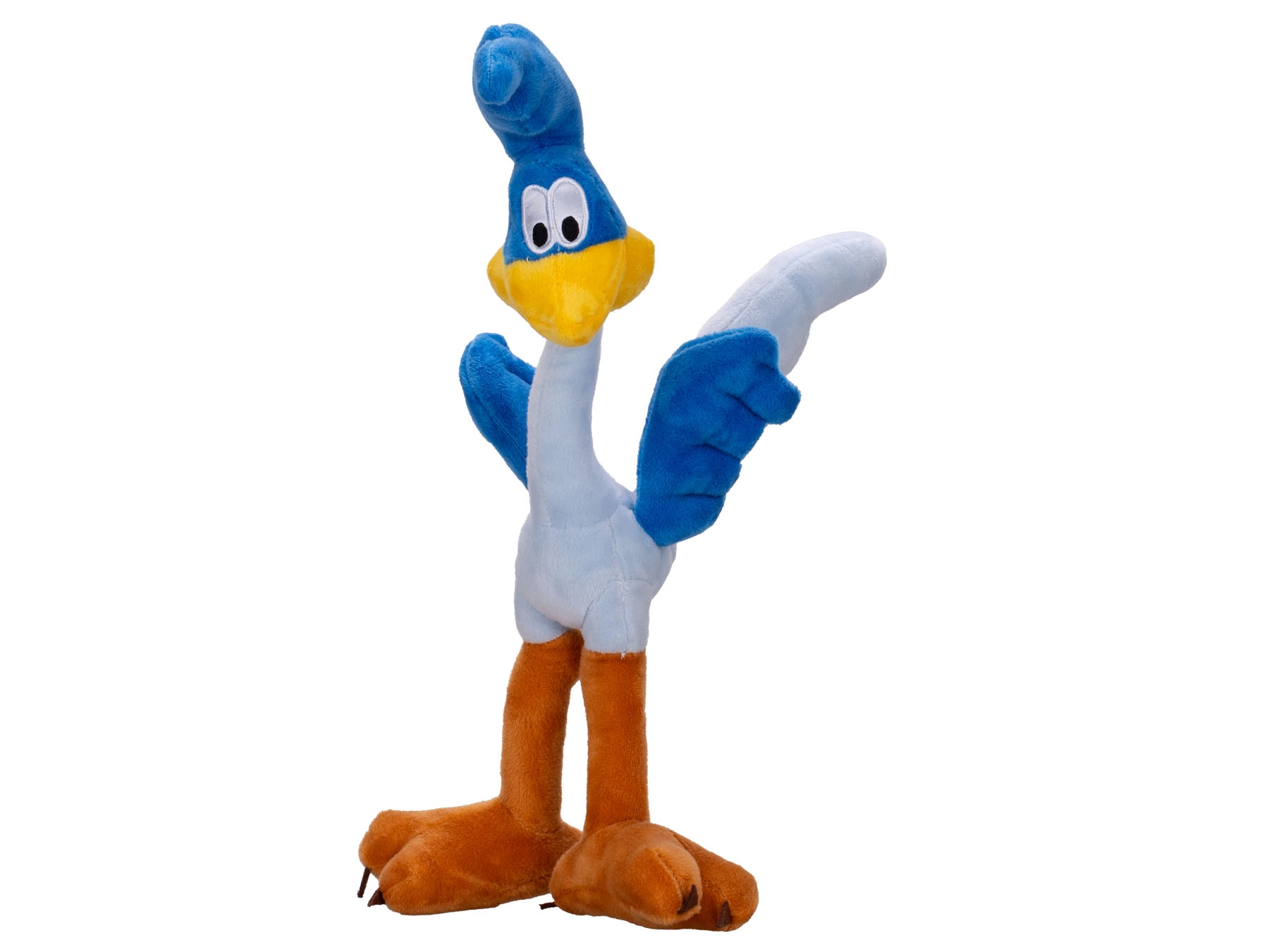 Rozkošná plyšová hračka ROAD RUNNER z animované série LOONEY TUNES potěší malé i velké fanoušky. Měkoučký a odolný plyšák s výškou 37 cm věrně zachycuje ikonickou modrou barvu a dlouhé nohy superrychlého ptáka. Je vhodný od narození, skvělý na mazlení i hraní, a díky kvalitním materiálům je bezpečný a příjemný na dotek.