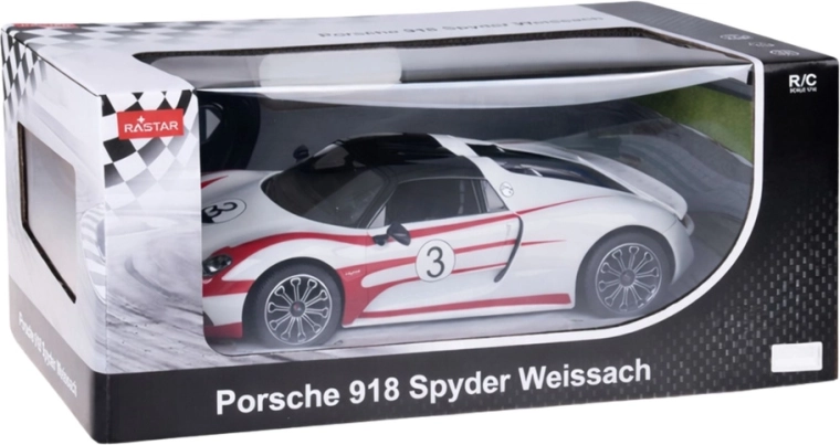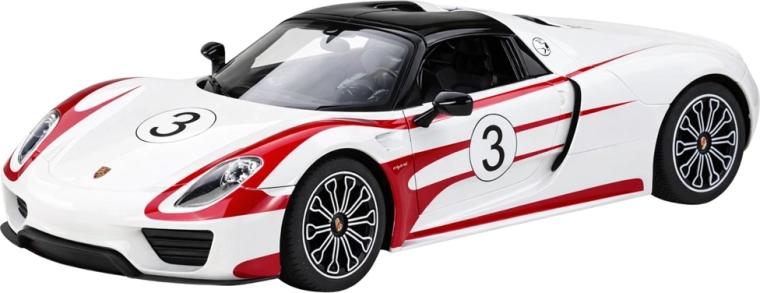 Tento licencovaný model Porsche 918 Spyder Weissach v bílé barvě s červenými závodními pruhy věrně kopíruje legendární supersport – od aerodynamické karoserie až po detailně zpracovaný kokpit. Kvalitní plast a pevné mechanické části zajišťují odolnost a dlouhou životnost.