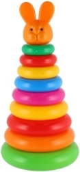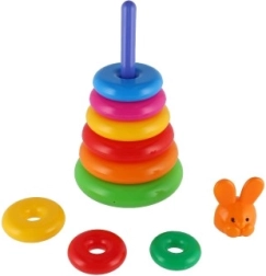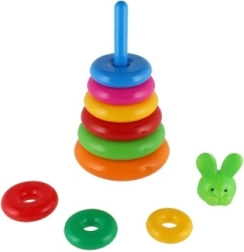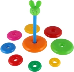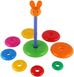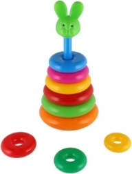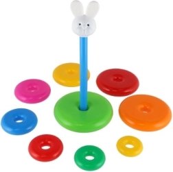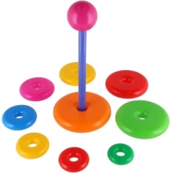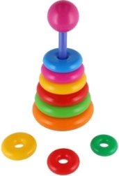 Tato skládací pyramida s barevnými kroužky je ideální první stavební hračka. Děti navlékají kroužky na tyč a skládají je od největšího po nejmenší, čímž si přirozeně trénují jemnou motoriku, trpělivost a logické uvažování. Základ tvoří pevný plastový stojan s tyčí a odnímatelným vrchním dílem (dle varianty).