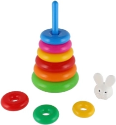 Oblíbená vzdělávací hračka pro nejmenší: barevná plastová pyramida s kroužky o výšce 28 cm, která podporuje rozvoj jemné motoriky, koordinaci oko‑ruka a poznávání barev a velikostí. Vhodná od 12 měsíců, ve 2 variantách a prakticky balená v síťce.