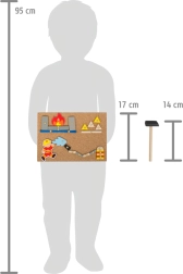 Tato kreativní zatloukací hra je ideální volbou pro děti, které milují tvoření a svět hasičů. Díky jednoduchému systému dílků s předvrtanými otvory a bezpečnému dřevěnému kladívku si děti snadno poskládají vlastní motivy na korkové desce, nebo mohou využít dodané oboustranné karty s návrhy motivů.