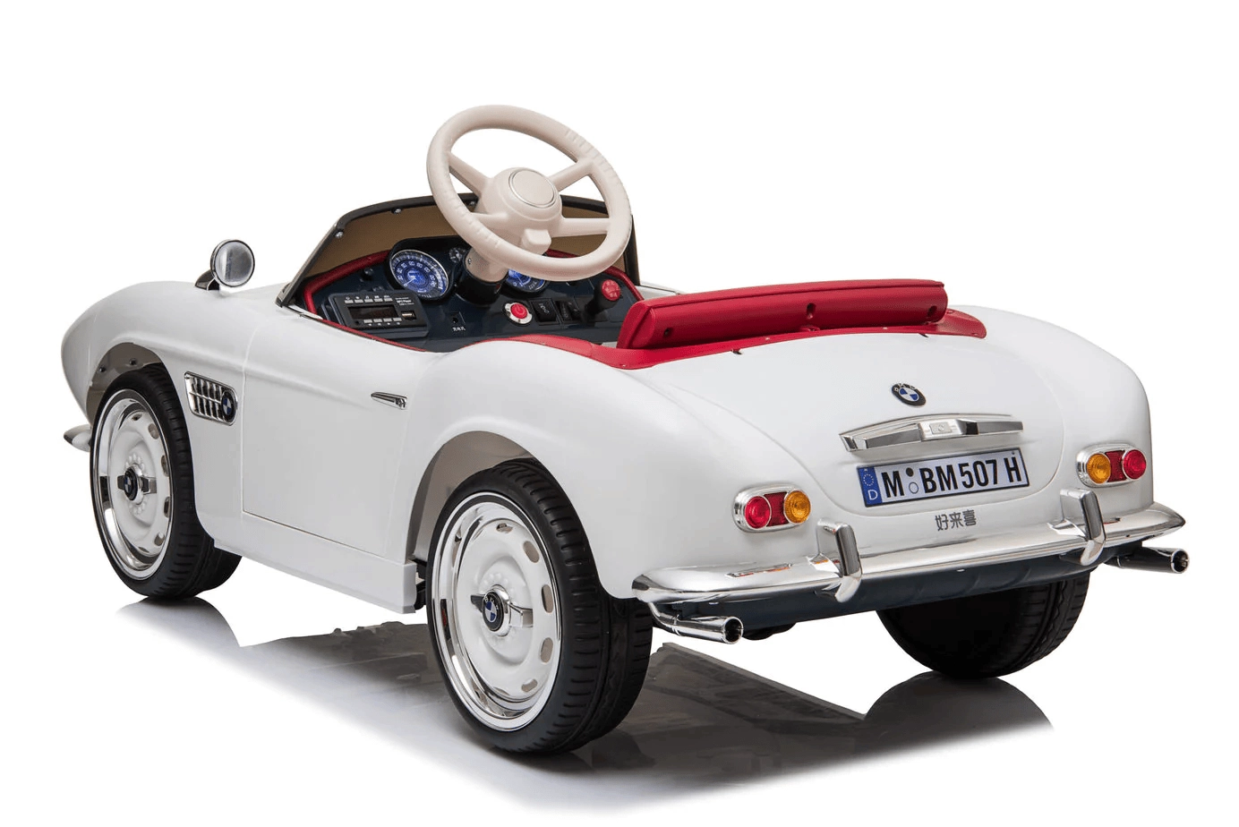 Stylové dětské elektrické autíčko s licencí BMW v elegantní bílé barvě. Nabízí realistický design, rodičovské dálkové ovládání 2,4 GHz, plynulý rozjezd, EVA kola pro tichou jízdu a komfortní kožené sedadlo. Díky předním a zadním světlům a multimediálnímu panelu s MP3/USB/TF si děti užijí zábavu i bezpečnou jízdu.