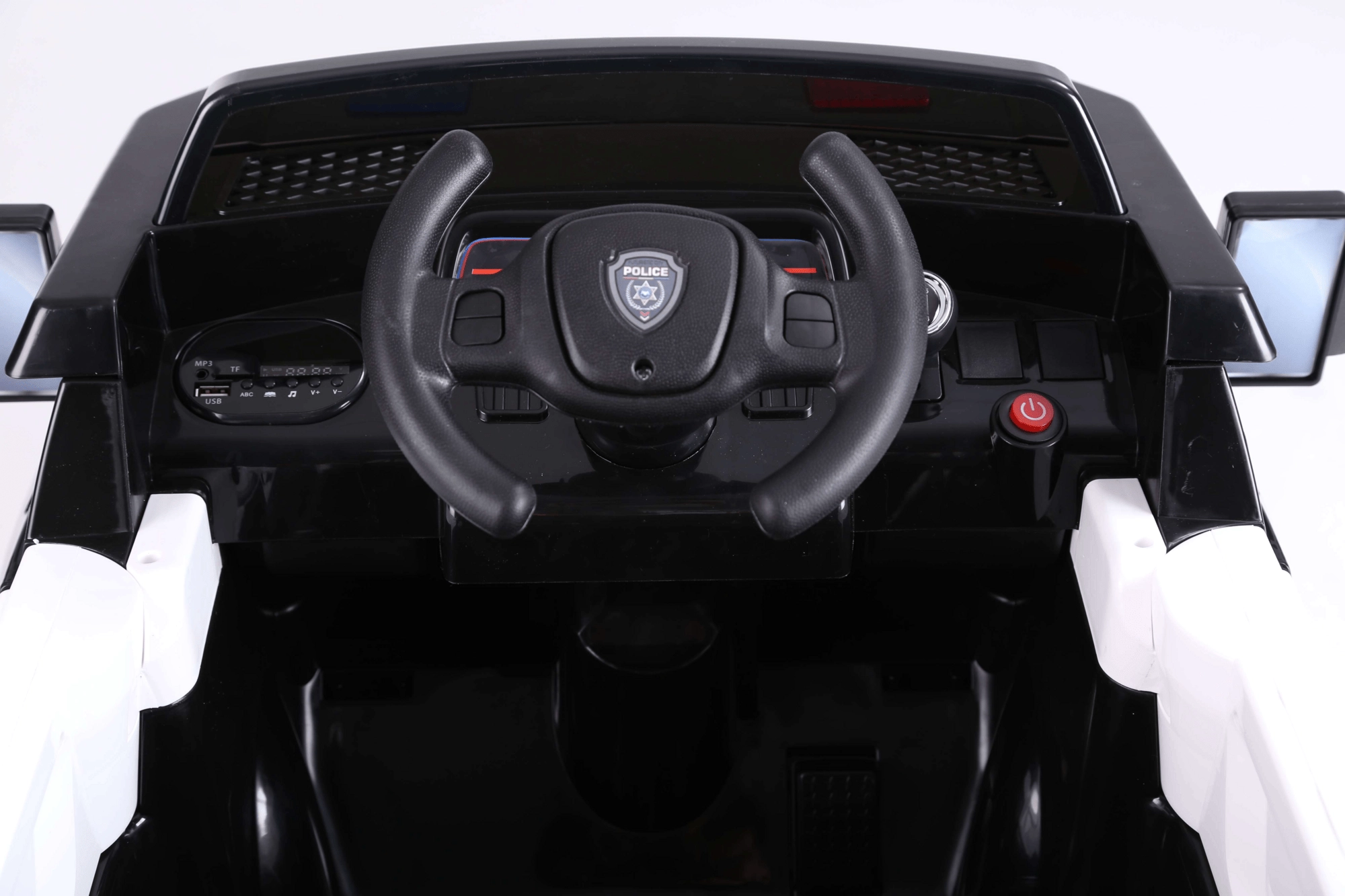 Stylové dětské elektrické autíčko v policejním provedení přináší realistický zážitek z jízdy s LED světly, zvuky a multimédii. Díky rodičovskému dálkovému ovládání 2,4 GHz je jízda bezpečná, zatímco děti si užijí snadné ovládání volantem a pedálem. Nechybí MP3 přehrávač, USB/SD vstup ani indikátor baterie pro pohodlné používání doma i venku.