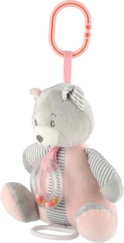 Díky klipu lze medvídka snadno připevnit na postýlku, kočárek nebo autosedačku.