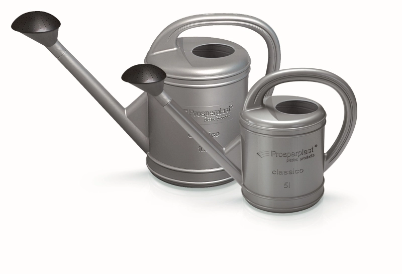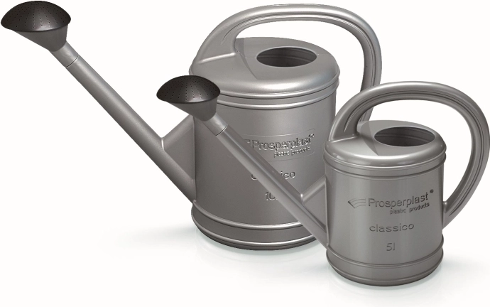 Kvalitní plast odolný vůči UV záření chrání konev před vyblednutím a stárnutím, takže si stříbrná barva i tvar udrží svůj vzhled po dlouhou dobu. Díky promyšlené ergonomii a vyvážené konstrukci se konev pohodlně drží a lépe se s ní cílí proud vody – ať už zaléváte záhony, truhlíky nebo pokojové rostliny.
