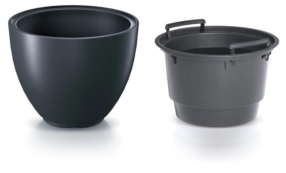 Praktická vkládací vložka usnadňuje přesazování i péči o rostliny. Květináč je skvělou volbou pro okrasné květiny, zelené pokojovky i aromatické bylinky, a to jak v obýváku, tak na terase či v kanceláři.