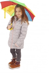 Jednoduché automatické otevírání umožní dětem rozložit deštník jedním stiskem. Konstrukce z kovu a plastu zajišťuje stabilitu ve větru, textilní potah spolehlivě odpuzuje kapky. Ideální pro děti od 3 let do školky, školy i na procházky.