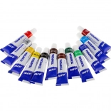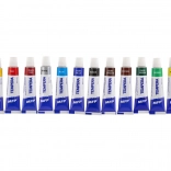 Sada obsahuje výběr 12 oblíbených odstínů ve 12ml tubách: světle a tmavě modrá, světle a tmavě zelená, světle a tmavě žlutá, světle a tmavě červená, světle a tmavě hnědá, bílá a černá. Hliníkové tuby se šroubovacím uzávěrem umožňují přesné dávkování a chrání barvu před vysycháním.