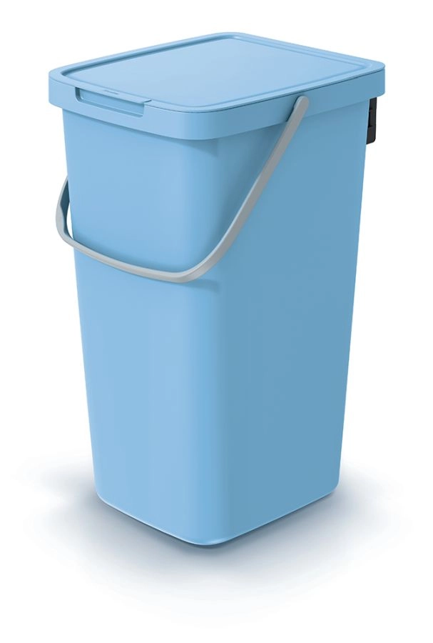Odpadkový koš SYSTEMA Q Collect 25 l kombinuje funkčnost a moderní design. Světle modrá barva oživí interiér, zatímco kvalitní plastové provedení odolá každodennímu používání a usnadní čištění. Díky štíhlému tvaru se bez problémů vejde pod stůl, do kouta či vedle kuchyňské linky.