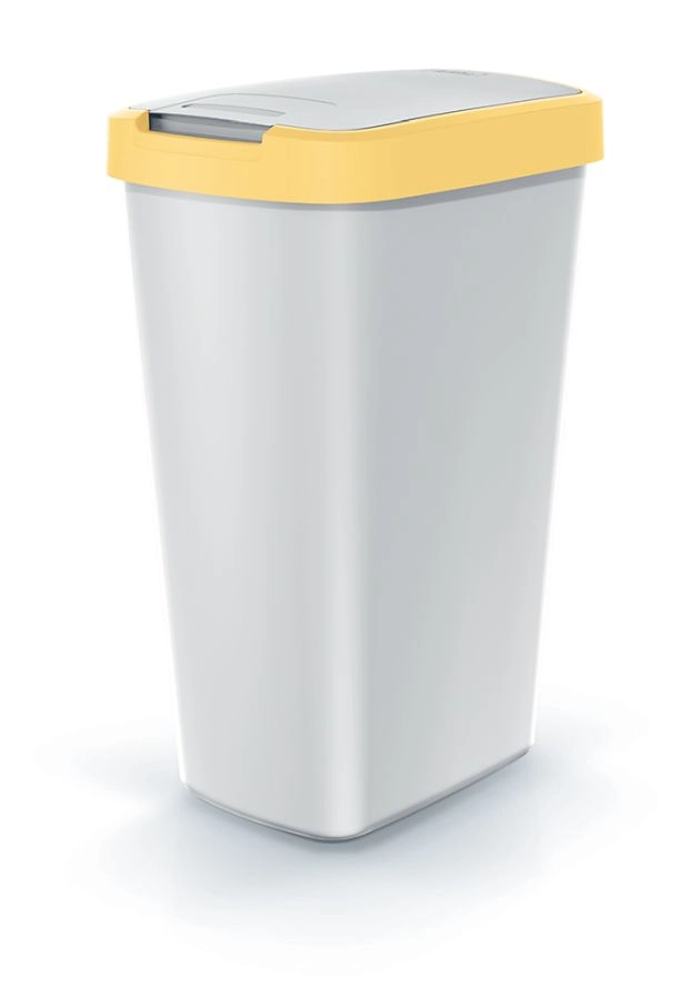 Odpadkový koš Compacta Q Flap s objemem 45 litrů je řešení pro každodenní pořádek v kuchyni, kanceláři i na chodbě. Jeho štíhlý, úsporný tvar umožňuje umístění do užších výklenků a koutů, zatímco popelavé tělo a světle žluté víko dodají interiéru svěží, moderní akcent.