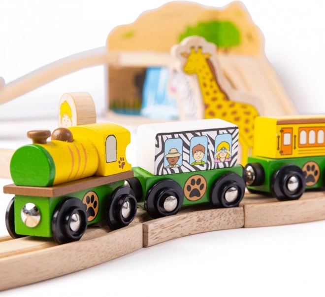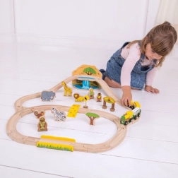 Objevujte svět safari s barevnou a bytelnou dřevěnou vláčkodráhou, která potěší děti od 3 let. Set zahrnuje zvířátka jako slon, zebra či opice, stromky, značky a most, po kterém projíždí žlutá lokomotiva se dvěma vagónky. Díky magnetickým spojkám je hra intuitivní a rozšiřitelná.