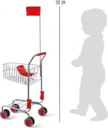 Díky výšce rukojeti 60 cm se vozík pohodlně ovládá dětem již od 3 let. Elegantní stříbrná barva s červenými detaily a bezpečná konstrukce z kovu a plastu podporují rozvoj motoriky, role-play a fantazii.