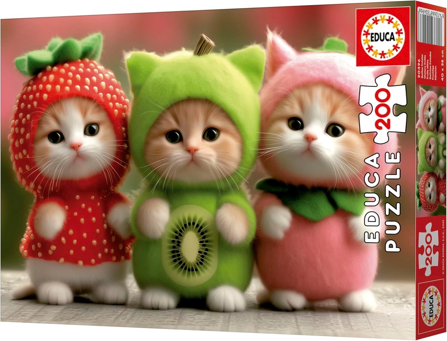 Objevte kouzlo ilustrovaných koťátek inspirovaných ovocem. Puzzle EDUCA v počtu 200 dílků potěší kvalitním tiskem, sytými barvami a přesnými výseky, díky nimž do sebe dílky dokonale zapadají. Velikost cca 40 × 28 cm po složení je ideální pro menší pracovní plochy a následné vystavení.