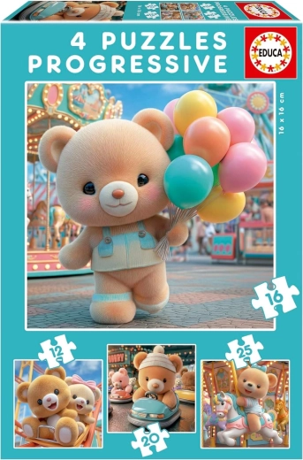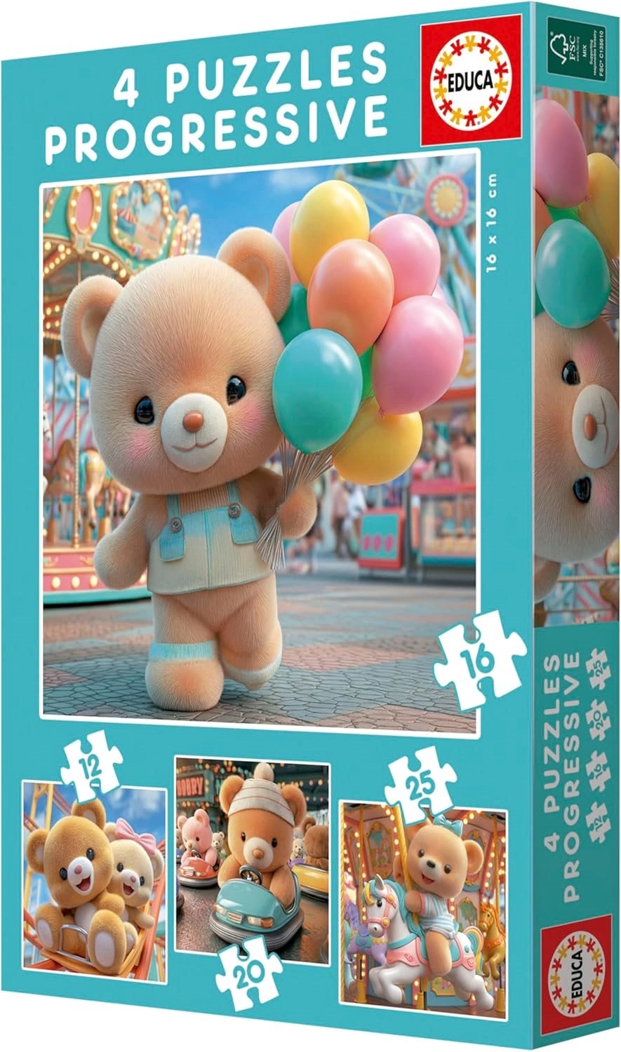 Objevte zábavný set 4v1 progresivních puzzle EDUCA s roztomilým motivem medvídka. Každé puzzle má jiný počet dílků (12, 16, 20 a 25), takže děti mohou postupně trénovat jemnou motoriku, logické myšlení a trpělivost. Vhodné pro první skládání díky pevným, dobře uchopitelným dílkům a kompaktnímu rozměru cca 16 × 16 cm po složení.
