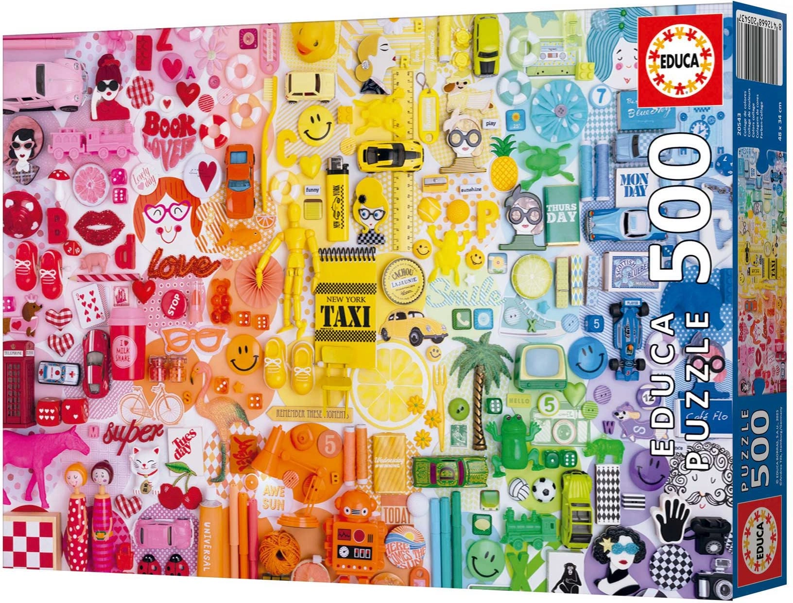 Užijte si relax s kvalitním puzzle EDUCA o 500 dílcích. Čeká vás pestrá barevná koláž, přesné dílky a lepidlo zdarma pro snadné zafixování hotového obrazu. Po sestavení má puzzle přibližně 48 × 34 cm.