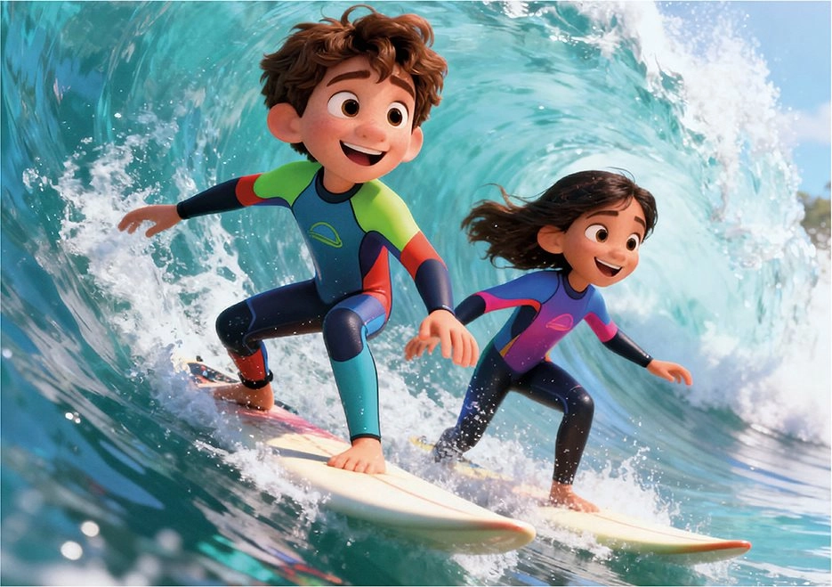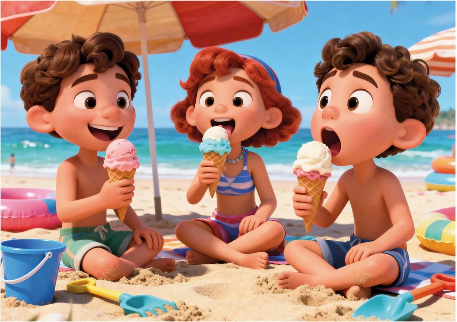 Barevné scény z pláže s dětmi a letní atmosférou podporují představivost a dělají z učení zábavu.