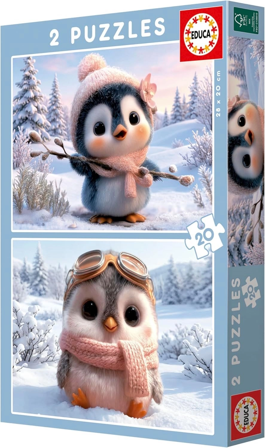 Objevte kouzlo skládání s dvěma roztomilými motivy tučňáků v praktickém setu 2×20 dílků. Děti si procvičí soustředění a koordinaci oko–ruka, zároveň si užijí radost z dokončeného obrázku. Každé puzzle má po složení přibližně 28 × 20 cm, takže se pohodlně vejde na stůl či podložku.