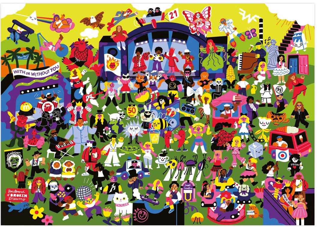 Udělejte si čas pro sebe i rodinu s poutavým puzzle EDUCA Puzzlepalooza. Po složení vás čeká jedinečná pátračka: v ilustraci je ukryto 100 odkazů na slavné hudebníky a kapely. Díky přiloženému plakátu se můžete nechat vést, nebo si výzvu užít naplno bez nápovědy.