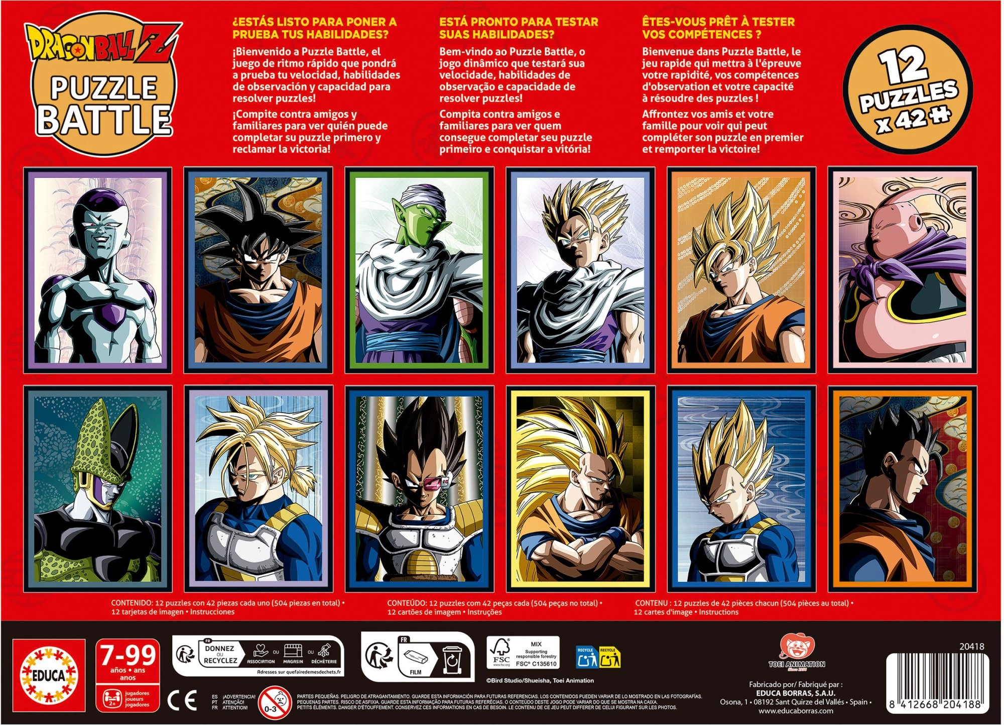 Užijte si napínavou puzzle bitvu s motivem DRAGON BALL Z od značky Educa. Set obsahuje 12 samostatných puzzle po 42 dílcích a 12 předlohových kartiček pro rychlé závodní skládání. Skvělé pro rozvoj koordinace oka a ruky, rychlosti, trpělivosti a pozorovacích schopností – ideální pro souboj s kamarády či rodinou.