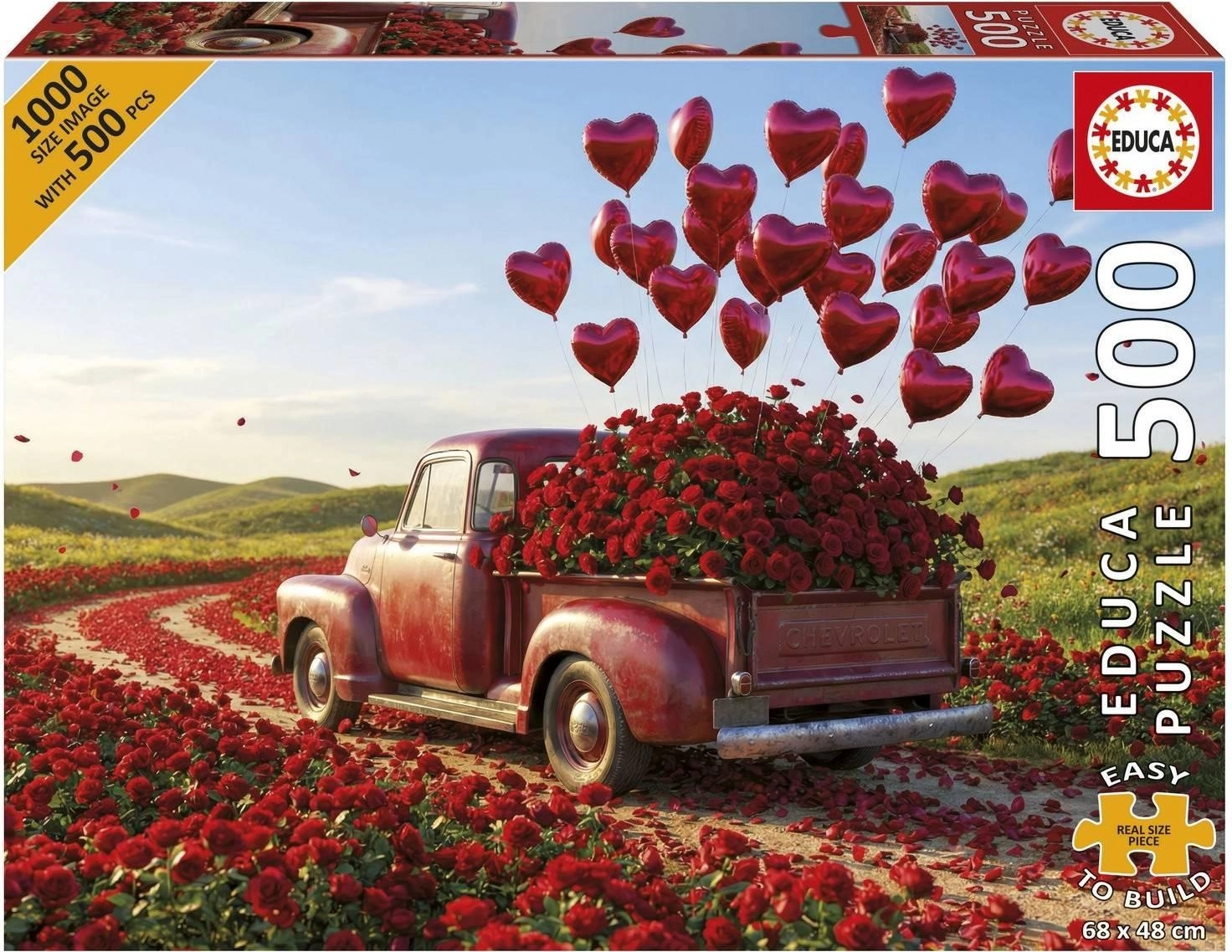 Užijte si relax s romantickým motivem pick-upu srdcí. Toto kvalitní puzzle s 500 dílky nabízí pohodové skládání a lepidlo ZDARMA v balení. Po sestavení vytvoří obraz o rozměrech cca 68 × 48 cm, ideální k zarámování jako dárek na Valentýna či dekorace domova.
