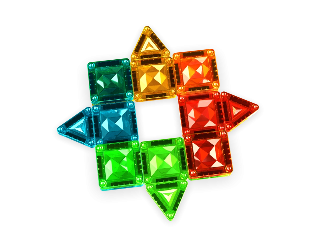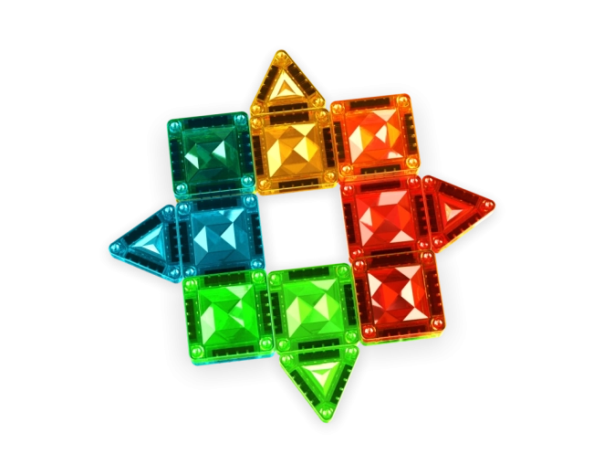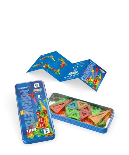 Sada obsahuje různé tvary pro nekonečné kombinace: čtverce, rovnoramenné, rovnostranné a pravoúhlé trojúhelníky. Všechny dílky jsou kompatibilní s ostatními sety Geomag Tiles, takže můžete postupně rozšiřovat sbírku a stavět ještě větší stavby.