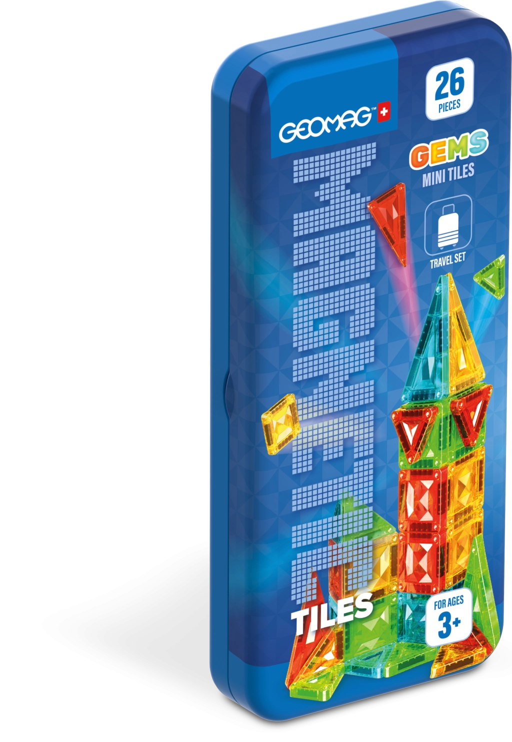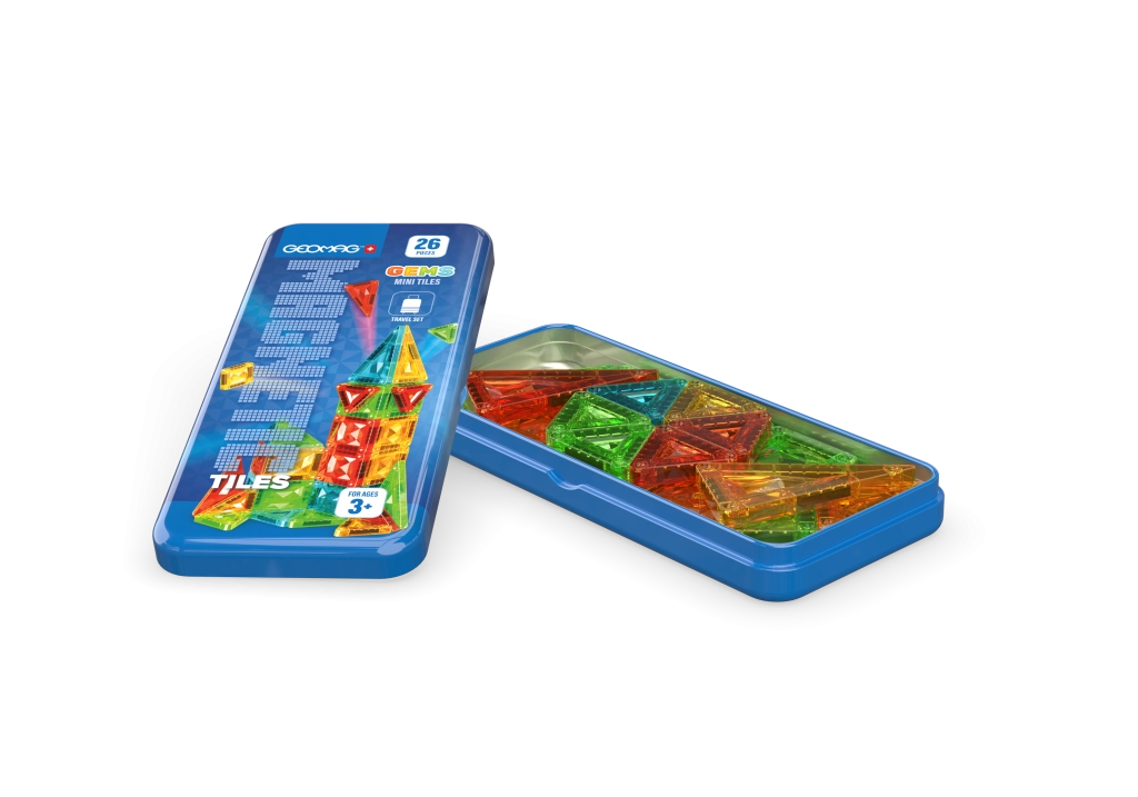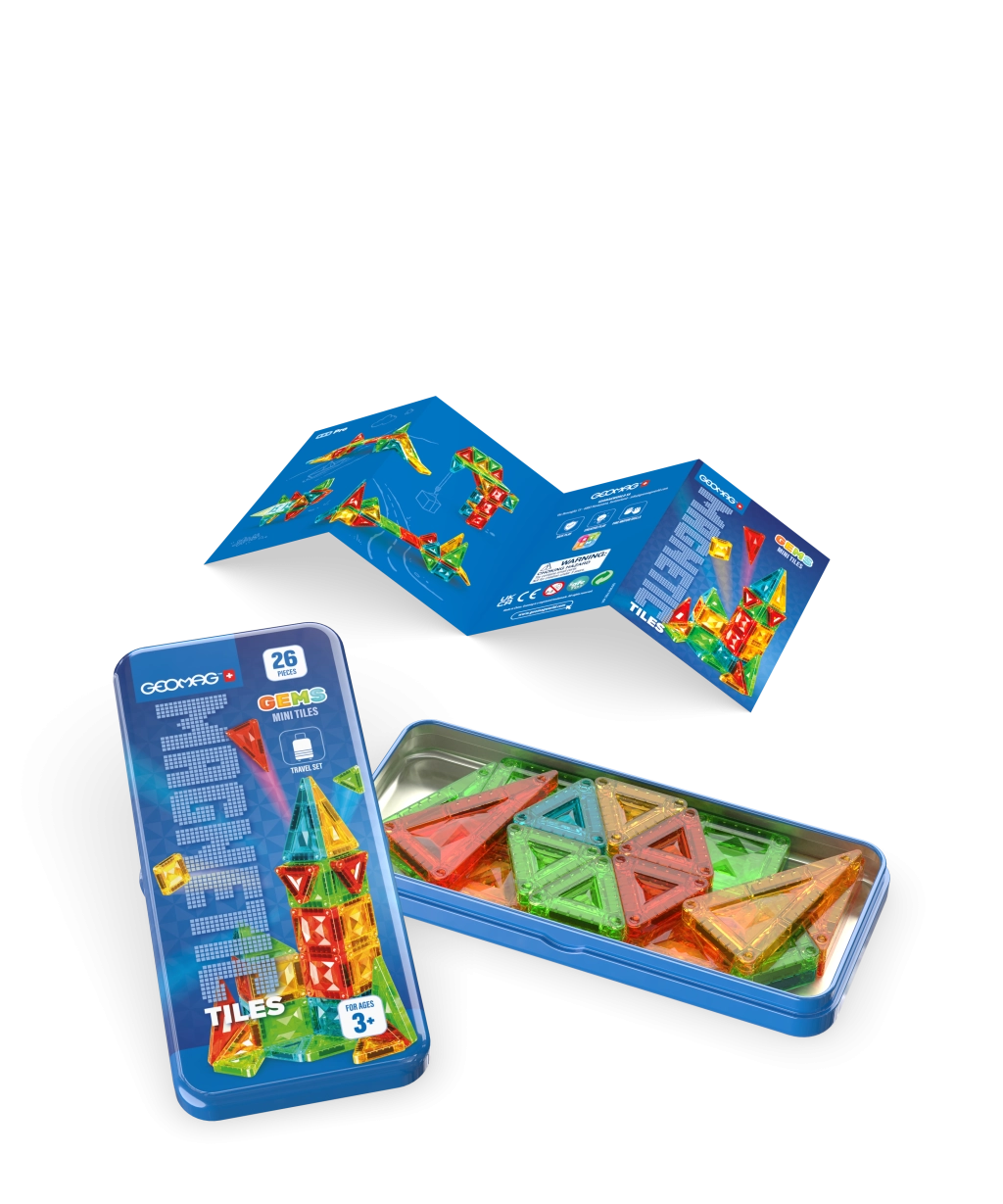 S magnetickou stavebnicí Geomag GEMS Mini Tiles děti snadno postaví věže, domečky i 3D tvary. Díky průhledným dílkům s „drahokamovým“ efektem vznikají stabilní a působivé konstrukce, které podporují kreativitu, jemnou motoriku a prostorovou představivost. Kompaktní plechový box udrží všechny dílky pohromadě – perfektní volba na cestování, do restaurace i na návštěvy.