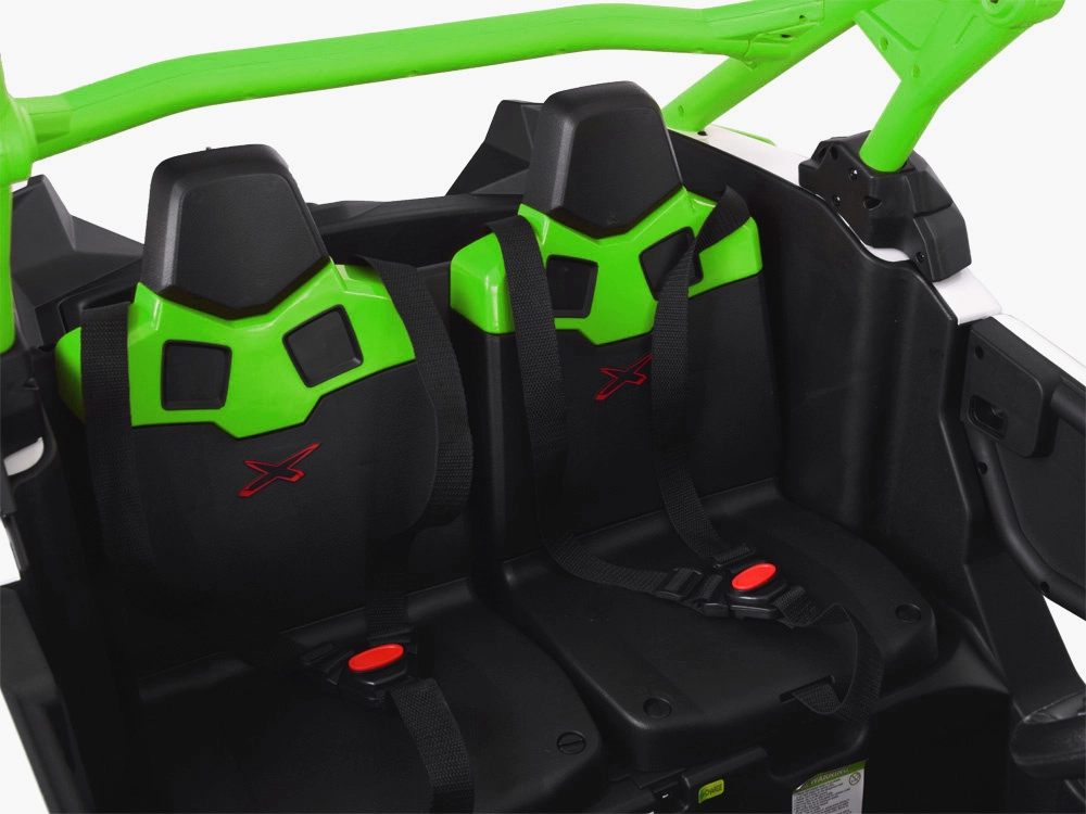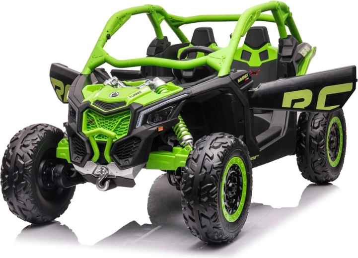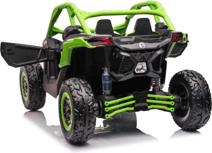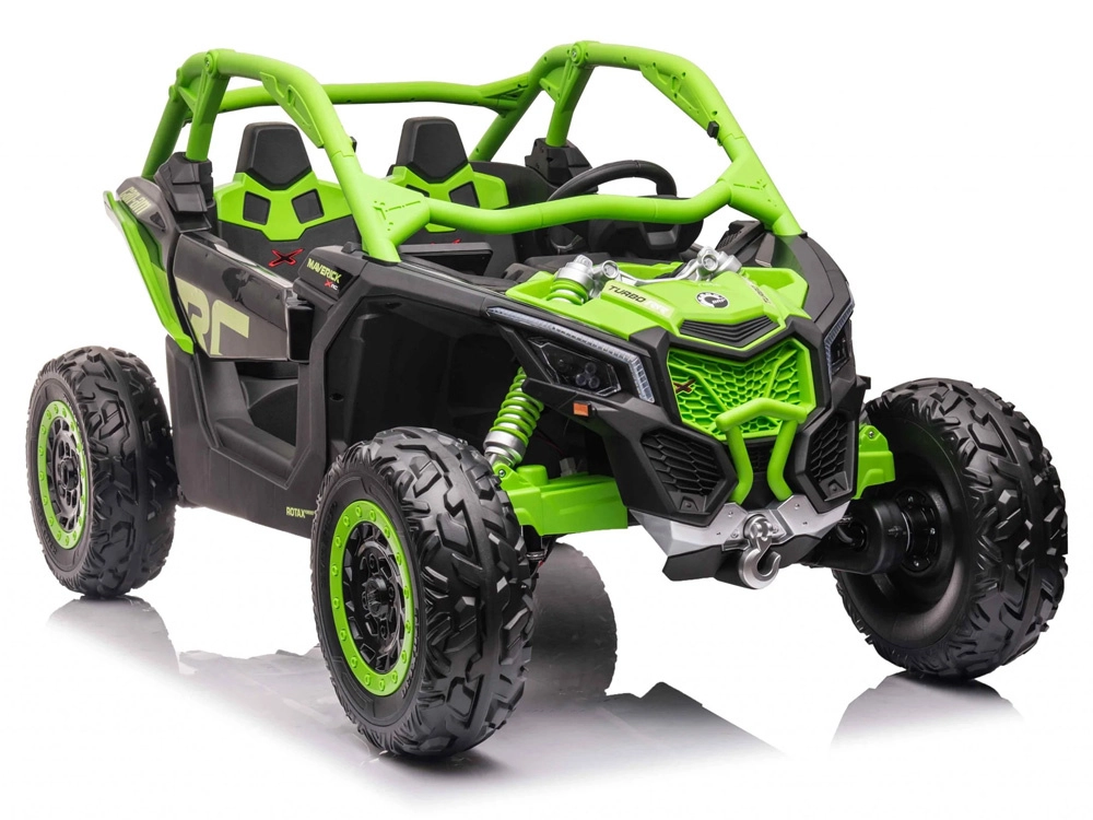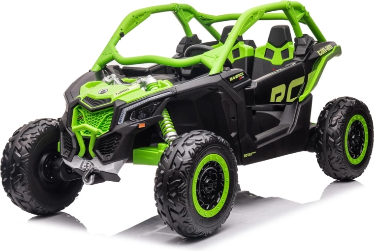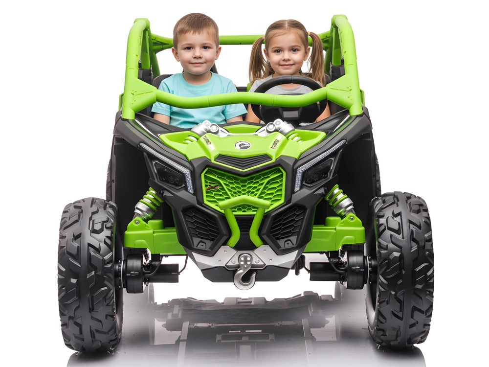 Robustní dvoumístné dětské buggy inspirované modelem CAN‑AM MAVERICK nabízí pohon 4x4, měkká EVA kola, nezávislé odpružení a dálkové ovládání 2,4 GHz pro rodiče. Díky 24V baterii, otevíracím dveřím a LED osvětlení je připravené na dobrodružnou jízdu v terénu i bezpečnou zábavu na zahradě.