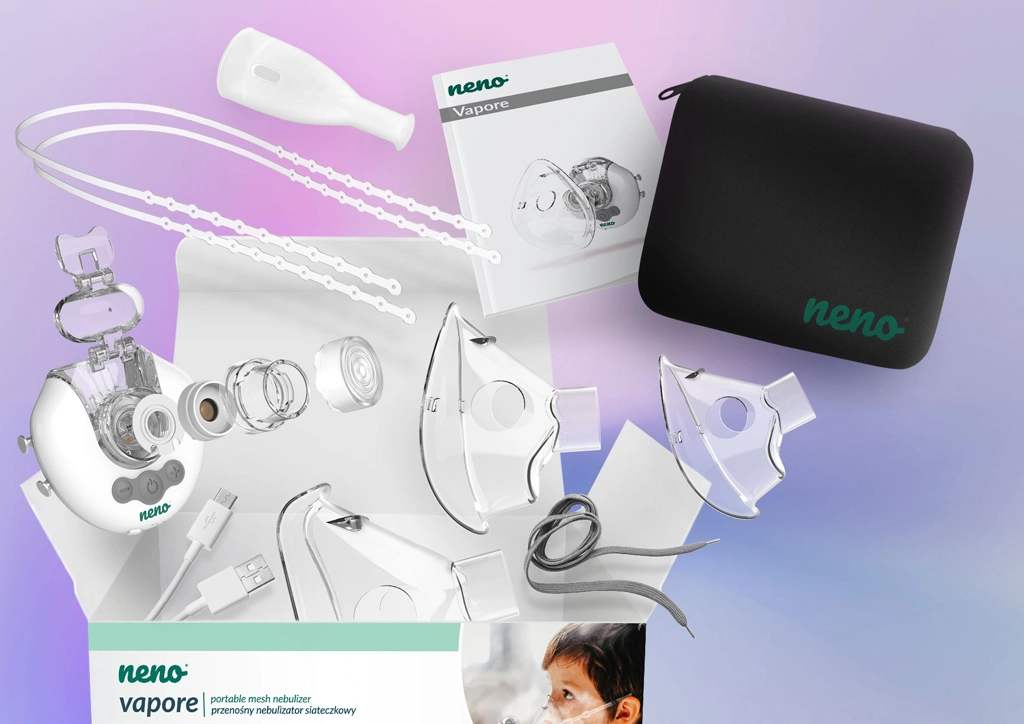 Lehký a kompaktní inhalátor Neno Vapore nabízí bezdrátový provoz, tichý chod a tři rychlostní režimy pro pohodlnou inhalaci kdekoliv. Díky MMAD <5 μm dostane léčivo hluboko do dolních cest dýchacích. V balení najdete 3 velikosti masek (novorozenec, dítě, dospělý) i náustek, velkou 6ml nádobu na lék a praktické cestovní pouzdro.