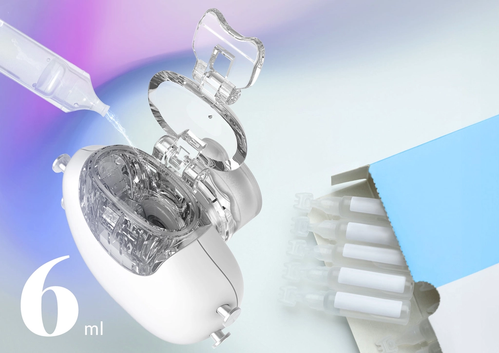 Neno Vapore je všestranný bezdrátový inhalátor navržený pro novorozence, děti i dospělé. Díky jemné aerosolové mlze s částicemi MMAD <5 μm účinně dopraví léčivo do dolních cest dýchacích. Tichý chod je ideální pro večerní i noční použití, zatímco tři režimy nebulizace vám umožní přizpůsobit intenzitu inhalace aktuálním potřebám.