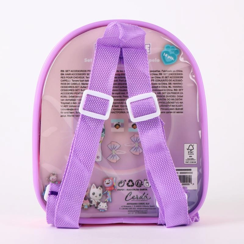 Objevte kreativní svět GABBY DOLL'S HOUSE s touto kouzelnou sadou vlasových doplňků v roztomilém batůžku. Děti si zamilují hru na kadeřnici a snadno vytvoří stylové culíky, copánky i slavnostní účesy. Lehký batůžek slouží jako praktické uložení všech doplňků a je perfektní na výlety i návštěvy.