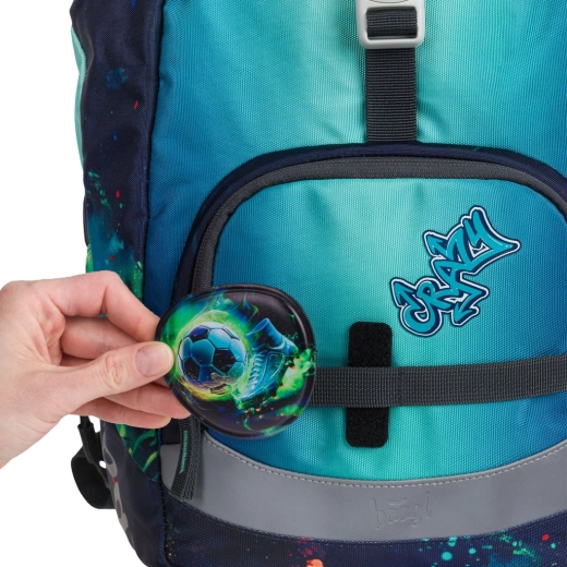 Stylové odznáčky BAAGLIES ve fotbalovém motivu oživí každou aktovku či batoh BAAGL. Díky uchycení na suchý zip je snadno vyměníte podle nálady, podpoříte originalitu a dopřejete dětem nekonečné možnosti personalizace.