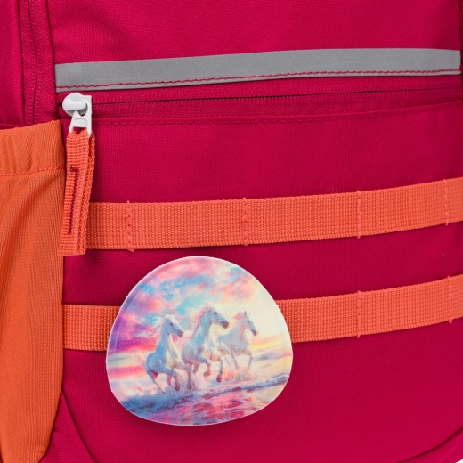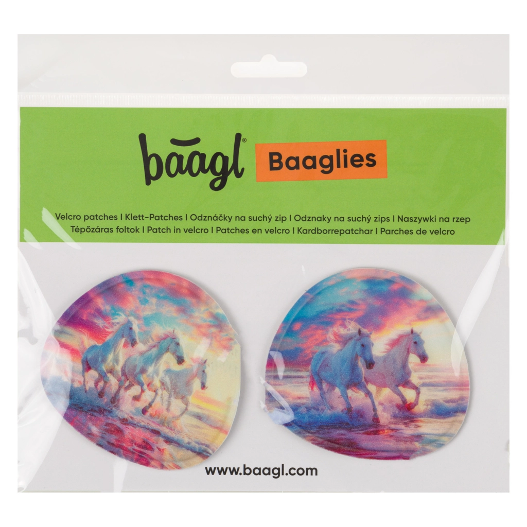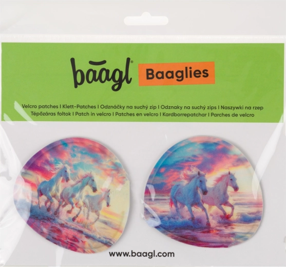 Výměnné odznáčky BAAGLIES jsou skvělým způsobem, jak rychle a zábavně upravit vzhled školních aktovek a batohů BAAGL. Motiv Kouzelní koně potěší všechny milovníky fantazie a elegantních doplňků. Instalace je otázkou okamžiku – stačí připnout pomocí suchého zipu a kdykoli obměnit design.