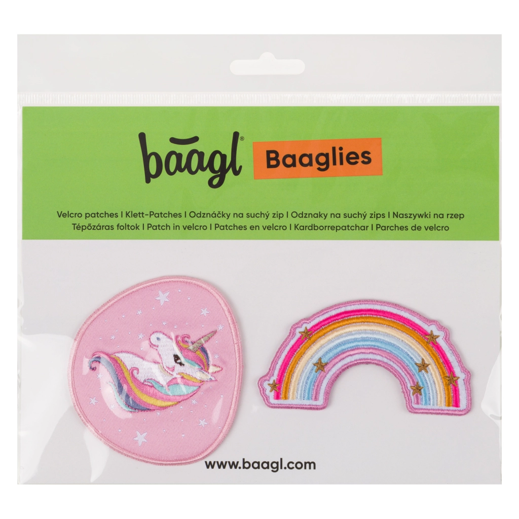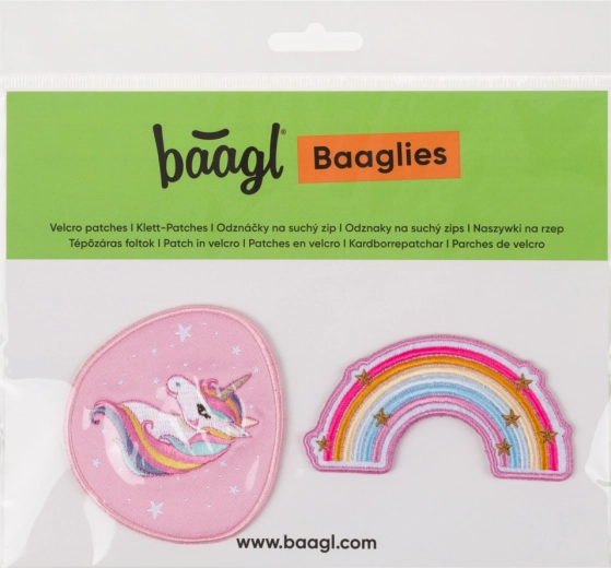 Odznáčky BAAGLIES jsou hravý způsob, jak rychle změnit design aktovek a batohů BAAGL. Instalace je díky suchému zipu otázkou chvilky – stačí připevnit, a je hotovo. Motiv Rainbow Unicorn potěší všechny milovníky barev a kouzelného světa jednorožců.