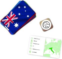Užijte si objevování zahraničních zemí přímo z pohodlí domova s hrou, která procvičuje znalost vlajek a základních informací o státech. Bavit bude všechny věkové kategorie od 10 do 60 let. Vyhrává ten, kdo nasbírá nejvíce karet s vlajkami.