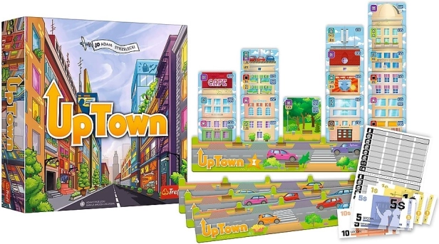 Proměňte se v úspěšného developera a vybudujte nejprestižnější ulici ve hře TREFL UpTown. Vybírejte projekty, stavějte domy, kanceláře, obchody, kavárny i hotely a chytře hospodařte s rozpočtem. Díky možnosti škodit soupeřům, přebírat projekty a pokládat karty na jejich budovy je každá partie napínavá až do konce – body se sčítají po ukončení hry.