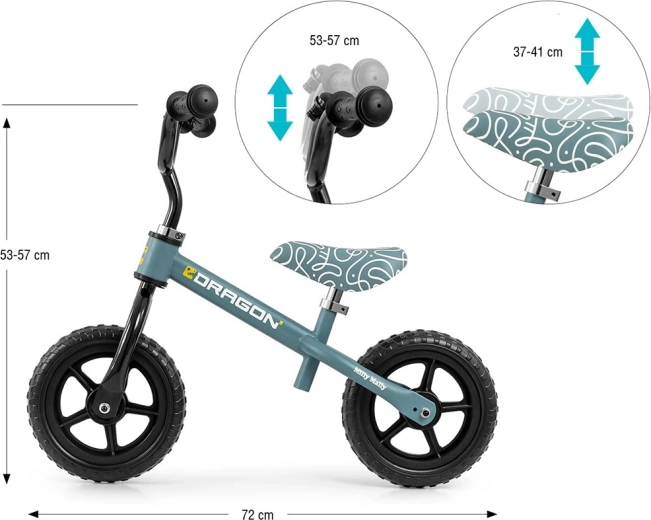 Odrážedlo DRAGON je skvělou volbou pro první krůčky do světa cyklistiky. Díky lehkému, ale pevnému ocelovému rámu se snadno přenáší a zvládne každodenní používání. Pěnová 10" kola nevyžadují dohušťování a zajišťují plynulou jízdu bez starostí o defekty.