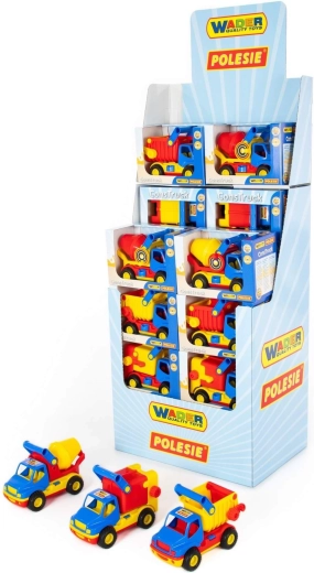 V nabídce najdete oblíbené typy stavebních vozidel (např. sklápěč, bagr, míchačka). Každý kus je navržen pro snadné uchopení dětskou rukou a plynulý pohyb kol pro hladkou jízdu na různých površích – od koberce po pískoviště.