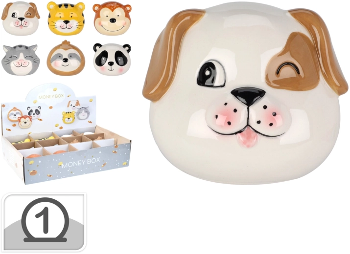 Podpořte finanční návyky dětí stylově. Tato keramická pokladnička ve tvaru oblíbených zvířátek (pes, lenochod, opička, kočka, panda, tygr) je skvělý dárek, který spojuje zábavu a učení. Díky kompaktním rozměrům 8,5 × 7 cm se snadno vejde na poličku, psací stůl i noční stolek.