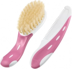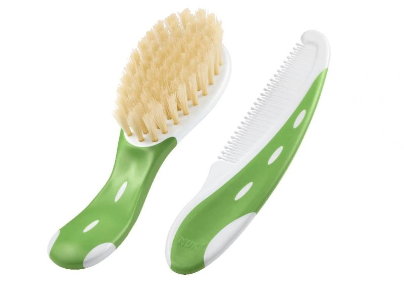 Poskytněte citlivé dětské pokožce tu nejjemnější péči. Sada NUK se skládá z kartáče s přírodními štětinami pro hebké uhlazení a hřebenu se zaoblenými zuby pro šetrné rozčesávání bez podráždění. Díky speciálně tvarované rukojeti se oba nástroje pohodlně drží i v mokré ruce.