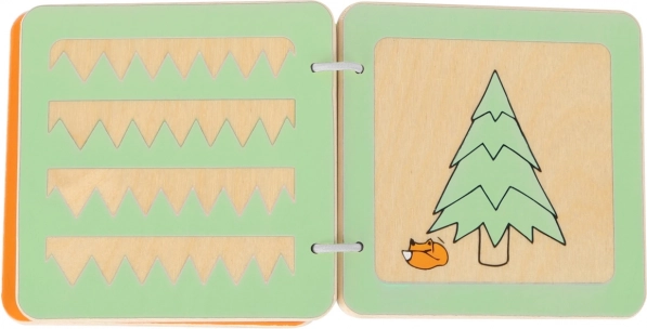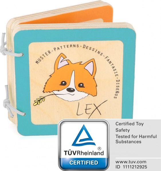 Dřevěná smyslová knížka s lišákem Lexem nabízí dětem první setkání s jednoduchými tvary, výřezy a ilustracemi, které podněcují zvědavost i představivost. Robustní zpracování, hladké hrany a kovové kroužky zajišťují bezpečné a pohodlné listování i pro nejmenší ručičky.
