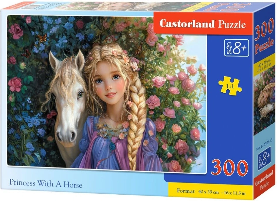 Objevte kouzlo pohádkového světa s puzzle CASTORLAND. Skládačka s motivem princezny a koně nabízí 300 dílků pro příjemné rodinné chvíle i trénink trpělivosti. Po složení má puzzle rozměr cca 40 × 29 cm – ideální velikost pro rámování nebo vystavení v dětském pokoji.