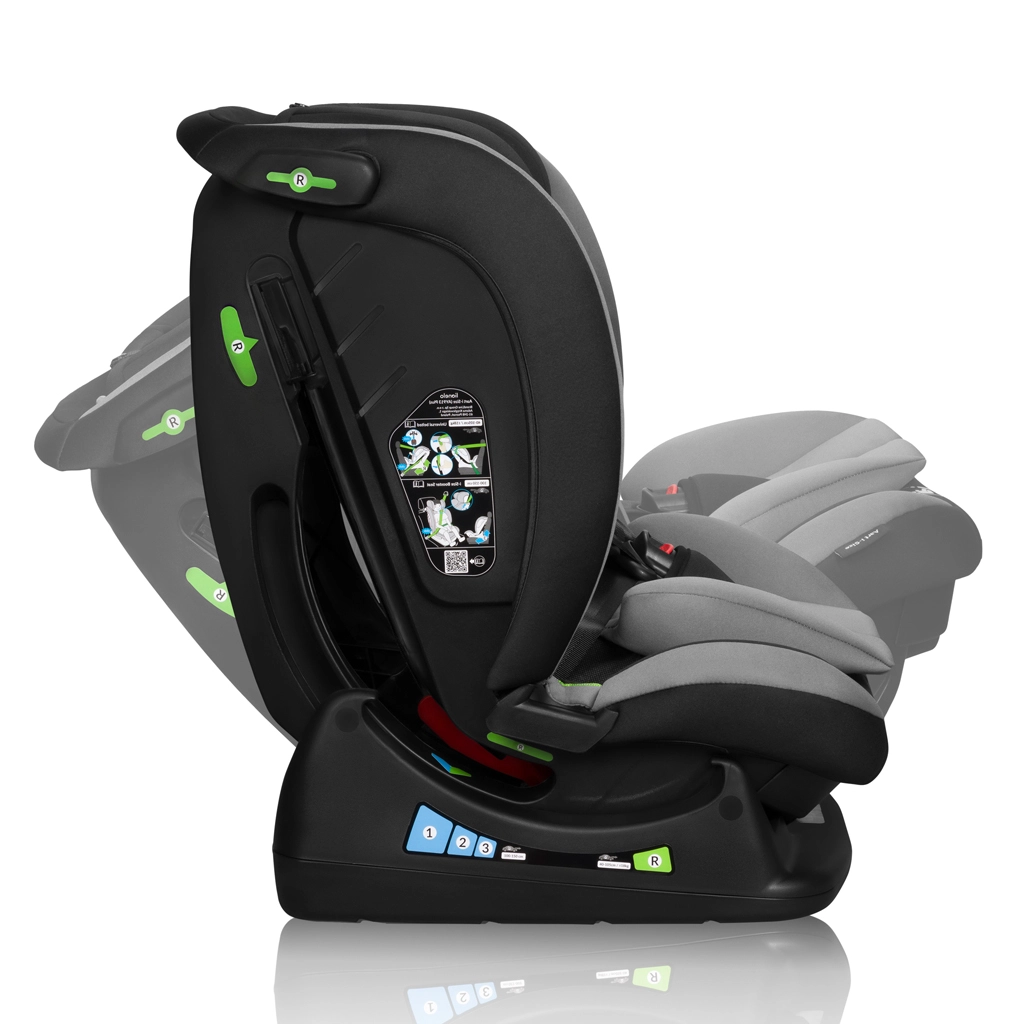 Instalace je snadná a kompatibilní s většinou vozů díky tříbodovým bezpečnostním pásům. Sedačka roste s dítětem – nabízí 13polohovou opěrku hlavy, integrované výškové nastavení pásů a měkké redukční a bederní vložky pro nejmenší. Pro pohodlné cestování je k dispozici ergonomický sklon v RWF a 3 stupně náklonu ve směru jízdy.