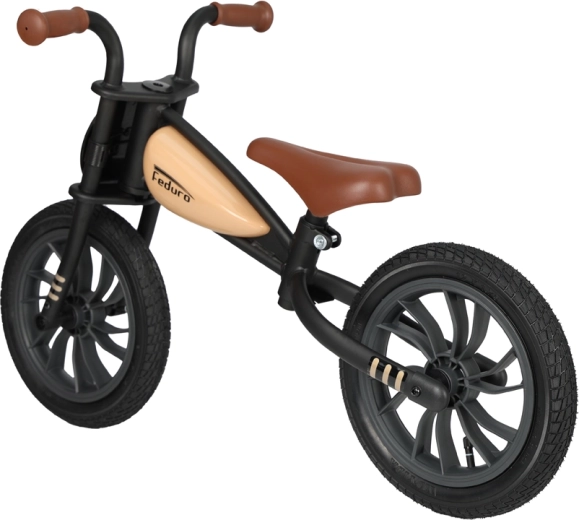 Stylové odrážedlo Qplay Feduro s kovovým rámem inspirovaným motocykly pomáhá dětem rozvíjet rovnováhu, koordinaci a sebevědomí. Disponuje nafukovacími 12" koly pro stabilní jízdu, nastavitelným měkkým sedlem a ergonomickými protiskluznými rukojeťmi. Vhodné pro děti 3–6 let do 30 kg.